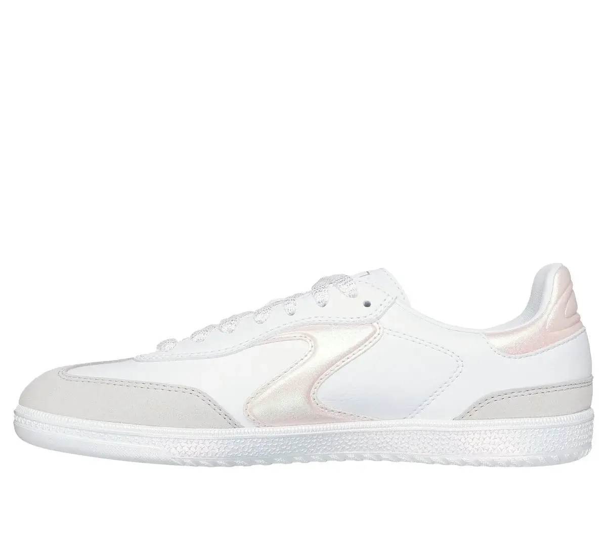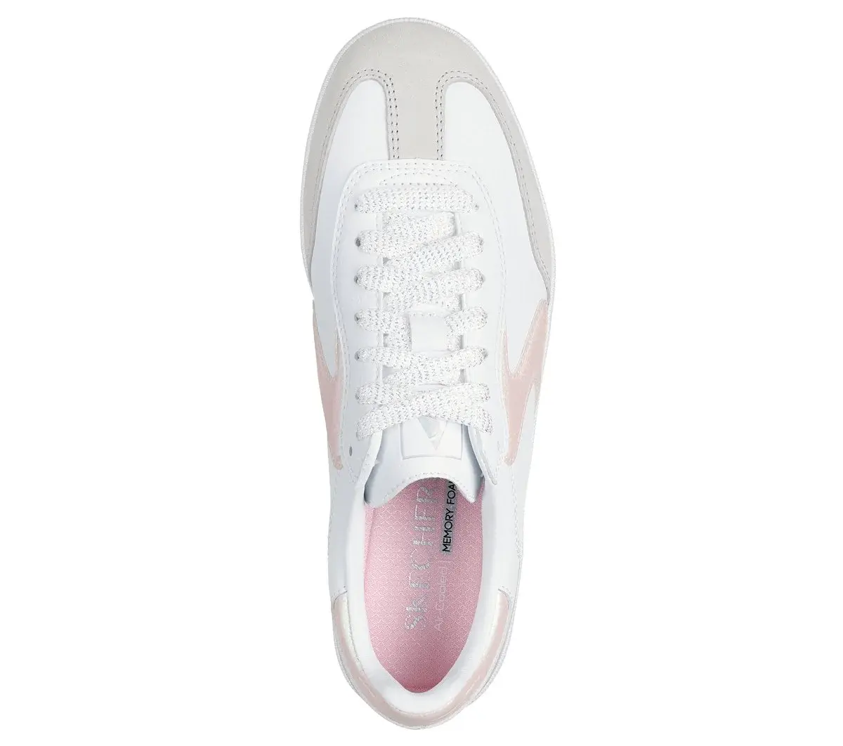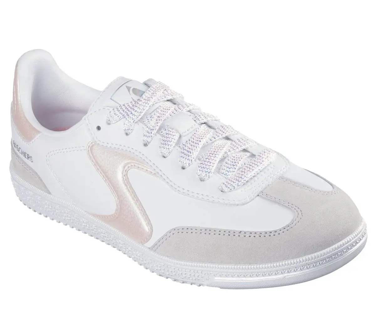 A modern classic meets fresh comfort in Skechers Hotshot – Frosted Blush. This lace-up court-style sneaker features a duraleather and pig suede upper with iridescent overlays and a cushioned Skechers Air-Cooled Memory Foam® insole.