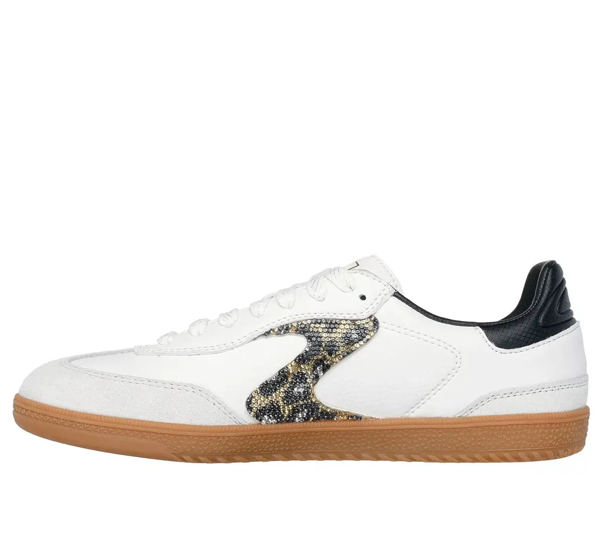 IT’S THE S® A modern classic meets fresh comfort in Skechers Hotshot – Shimmering Spots. This lace-up court-style sneaker features a duraleather upper with pig suede overlays, rhinestone embellished ‘S’ quarter logo, and a cushioned Skechers Air-Cooled Memory Foam® insole.