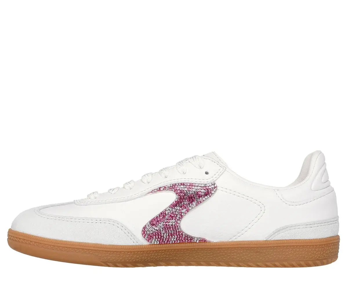 IT’S THE S® A modern classic meets fresh comfort in Skechers Hotshot – Shimmering Spots. This lace-up court-style sneaker features a duraleather upper with pig suede overlays, rhinestone embellished ‘S’ quarter logo, and a cushioned Skechers Air-Cooled Memory Foam® insole.