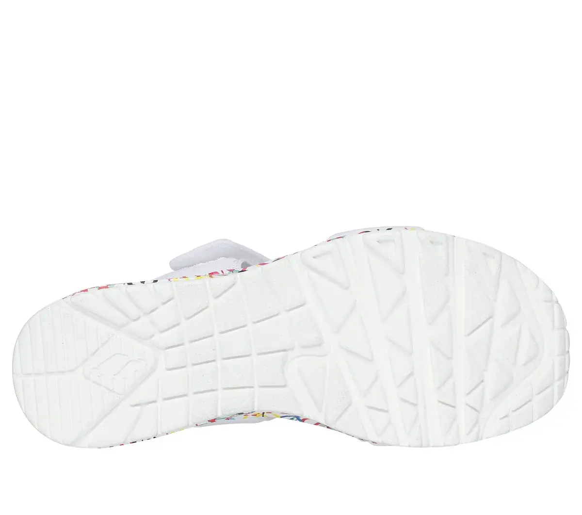 Internationally renowned muralist James Goldcrown brings his iconic #Lovewall heart designs to Skechers in this inspiring collaboration. Show your creative style with Skechers Street™ x JGoldcrown: Uno – Sea Of Love. This fashion sandal features a print of the artist’s signature heart design on the midsole and a woven fabric upper with an adjustable slingback strap. The design is complete with a cushioned Yoga Foam® footbed and a visible Skech-Air® airbag midsole.