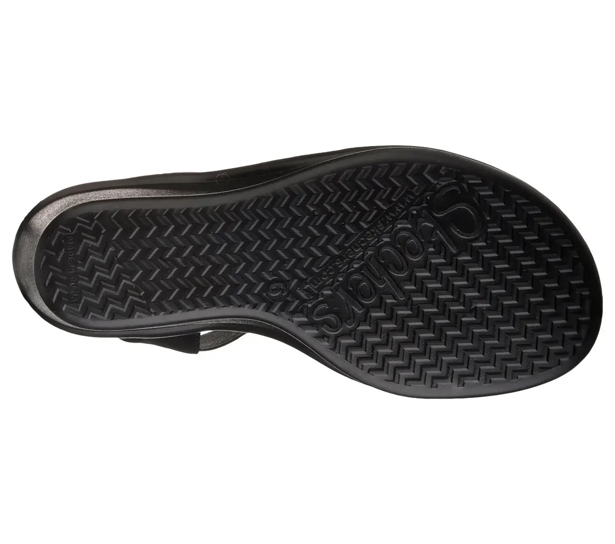 You gotta put a ring on the amazing style of Skechers Cali® Rumblers – Queen B. This casual wedge-heeled slingback slide style features a leather-textured synthetic upper with stretchy instep strap and rhinestone details, plus Memory Foam comfort footbed.